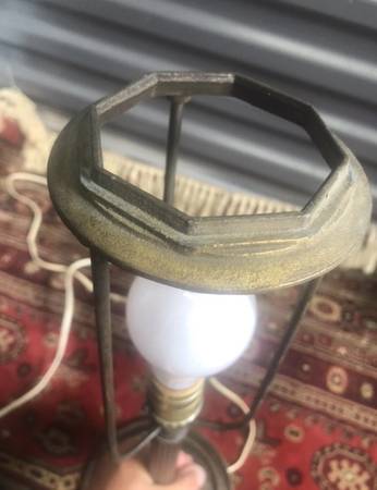 Arts and Crafts Movement. THESE- were Originally NATURAL GAS BURNING LAMPS, many got thrown away when Electricity became the norm. The SHADE AND LAMP MOUNT TOP have an open top, and the PIPING and entry for the gas were on the base side bottom. You’ll see a small hole in the bottom Standard where the Flow Knob for the Gas was.