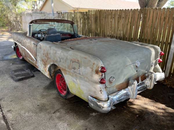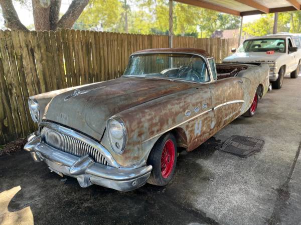 1954 Buick Century Project, two door hardtop. Top has been cut off to make convertible. (can be reattached). Has good rear and side glass but windshield is cracked. Has 322 engine believed to be original with automatic , power steering and brakes, factory A/C, real wire wheels. Car ran several years ago but will need to be trailered. V54J4686 Bill of sale. $3750 OBO. We have the rear glass and a good windshield that go with car. Engine ran 6 years ago!