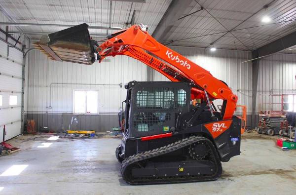 KEY FEATURES: 96.4 HP Kubota V3800-TIEF4 3.8L Turbo Diesel, 2-Speed Travel + Reversing Fan, High Flow + Auxiliary Hydraulics, Hydraulic Quick Coupler, Tooth Bucket Included, Rubber Tracks – 11,574 lbs Operating Weight, Joystick Loader Controls, Smooth Precision Response, Front & Rear Work Lights, Travel Alarm for Jobsite Safety, Enclosed Cab with A/C, Heat, Air Suspension Seat, AM/FM Radio, Backup Camera, Low-Hour
