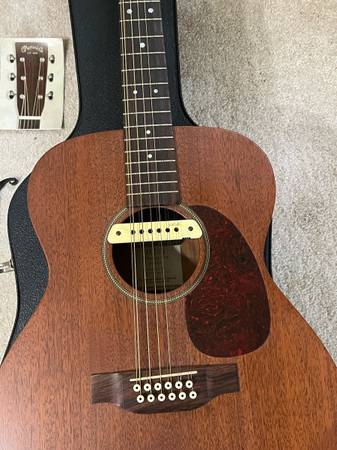 I have a Martin J15-12 guitar in very good condition. This is a solid mahogany 12 string with an L.R. Bags pickup professionally installed. It plays and sounds like a dream. There is one small ding...