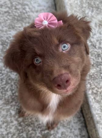 9 week old 3 Red Tri Female Australian Shepherd Puppies Have 1st set of shots Playful,rambunctious,smart and great family dogs! Rehoming fees apply