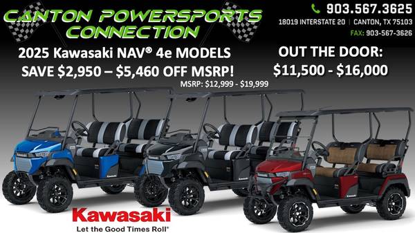 The NAV® 4e delivers everyday convenience combined with Kawasaki build quality. Built for durability, the NAV® 4e turns even the simplest errands into a fun journey. Cruising through the neighborhood in the NAV® 4e will turn heads and might even have your neighbors wishing they had one too.