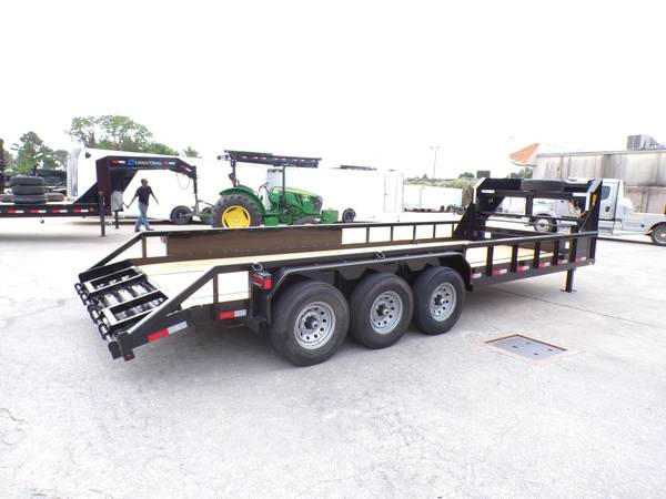 This trailer is for sale at Crazy Trailer World in Houston Tx. We offer financing with approved credit. 96"x24' EXTRA WIDE GOOSENECK TRIPLE AXLE HEAVY DUTY LOWBOY PIPE TOP UTILITY (FARM USE ONLY) ( THIS TRAILER IS FOR FARM USE ONLY ) INSIDE WIDTH AT TOPRAIL 96" OVERALL OUTSIDE WIDTH 9'8"