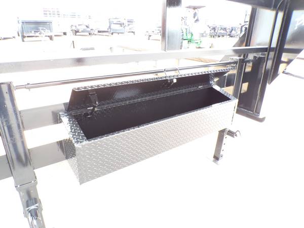 COUPLER: 2-5/16" - GN Adj. PLUG: 7 - Way Molded Plug Harness SUSPENSION: Equalizer W/5 Leave Slipper Springs System TIRES: New ST-235-80-R-16" Radials Load Range "G" 14-Ply TIE DOWNS: 3" Stake Pockets NECK: 12" I-Beam Neck & 12" I-Beam Risers LIGHTS: "LED" Rubber Mounted Running, Stop, Turn & Clearance AXLES: Three - 7K Dexter Axles/Cambered W/Accu-Lube Hubs STORAGE: Toolbox W/Lockable Lid Between GN Risers FRAME: Tandem - AX 5" X 3" X 5/16" Angle IronTriple - AX 6" X 4" X 3/8" Angle Iron TOP RAILS: 3" X 3/16"T Square Tubing, Slope Back EXT. FINISH: Painted With A Newly Innovated Durable High GlossAcrylic Polyurethane Full Two-Component Finish JACK: Two - 12K Spring Loaded Drop Leg W/Sand Foot FENDERS: 14GA Straight Tread Plate W/10GA Smooth Backings BRAKES: Electric Brake ON All Axles W/Break Away & Charger DOVETAIL: 2' Heavy Duty Drive Up Self Cleaning Dovetail CROSSMEMBERS: 3" Channel Iron On 16" Centers3" Channel Tie Runners From Front To Back FLOOR: #1 Pres Treated/2"X8" Pine Double Screwed/Per/Run