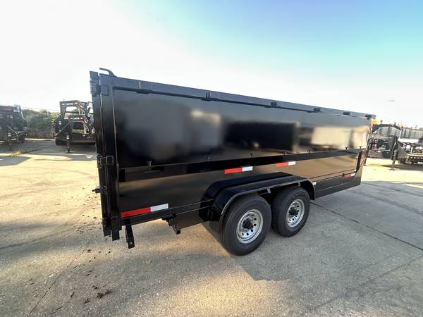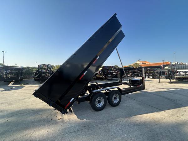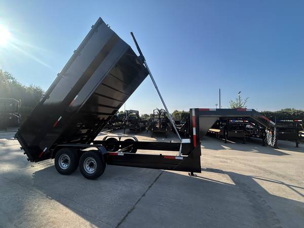 The $300 discount has already been applied to the Sale Price.Stock# SB075879 This trailer is for sale at Crazy Trailer World in Houston. We offer financing with approved credit. New TP DT71614K 82"x16' Gooseneck Dump Trailer with 48" sides RAMPS ARE INCLUDED IN PRICE!! TARP IS NOT INCLUDED BUT AVAILABLE FOR PURCHASE !! Trunnion Mount Dual 7,000 lb Direct Lube 8 lug (electric brakes on both axles) Heavy Duty Slipper Spring Suspension New 16" ST235/80R16 10ply radial LRE Double swing doors (open like barn doors) Electric over hydraulic (1.7 gpm) - power up / gravity down Front locking tool box - contains battery and pump Multi stage trunnion mount telescopic cylinder 12,000 lb drop leg jack All flush mount or recessed LED stop / turn / clearance lighting U.S. made sealed modular wiring harness DOT required emergency break-a-way kit and conspicuity tape & Prop Rod Fully primed and painted with automotive grade acrylic enamel