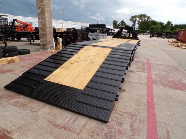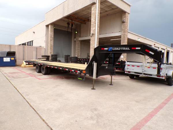 102" x 32' Tandem Low-Pro Gooseneck w/Hyd. Dove Trailer * ST235/80 R16 LRE 10 Ply. (Dual)* Standard Battery Wall Charger (5 Amp)* Coupler 2-5/16"(30k)Adj. Rd. 19 lb.(Standard Neck and Coupler)* 10' Hydraulic Dovetail w/Cleats on Dove (Angle Outside Only)* Treated Wood Floor* 2 - 12000 Lb Dexter Sprg Axles (2 Elec Brakes)(HDSS)* 16" Cross-Members* 2 - Hydraulic Jacks Lippert* Stud Junction Box* Lights LED (w/Cold Weather Harness)* 4 - D-Rings 4" Weld On* Mud Flaps* 2" - Rub Rail* Road Service Program * TUFF Wireless Remote (4-Button)(Hyd/Hyd)* 2 - MAX-STEPS (15")* Front Tool Box (Full Width Between Risers)* 1 - Set Of Toolbox Brackets* Under Frame Bridge and Pipe Bridge* Winch Plate (8" Channel)* Black (w/Primer)GL0232122 Please contact Crazy Trailer World to verify this trailer is still available. All prices are subject to Tax, Title, Plates & Doc Fees. All Trailers are discounted for Cash or Finance Price! We charge a convenience fee on credit card purchases. Crazy Trailer World is not responsible for any Typos, Errors or misprints. We also have a fully stocked selection of trailer parts and offer trailer service