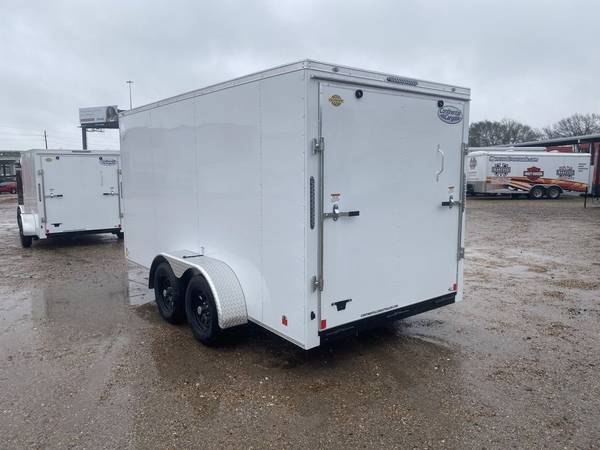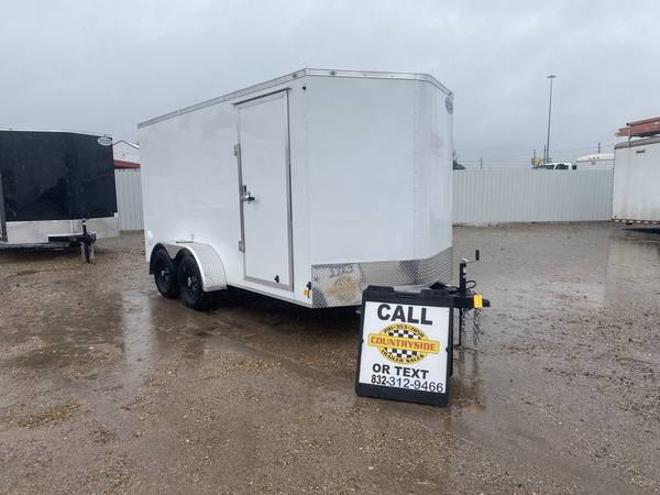 7 X 14 TANDEM AXLE ENCLOSED CARGO TRAILER WITH 36" SIDEDOOR BAR LOCK AND FLUSH LOCK, REAR RAMP DOOR WITH EXTENSION FLAP, 3/4 PLYWOOD FLOOR, 3/8" PLYWOOD SIDE WALLS, 1- 12V DOME LIGHT, 15" RIM WITH RADIAL TIRES, .030 EXTERIOR ALUMINUM PANELS WITH MATCHING SCREWS. CALL FOR MORE DETAILS.Countryside Trailer Sales 21840 I-45 North Spring, TX 77373 Ask for: Sales Staff Primary Phone: (281) 353-7858 A27FBAFAEA464DBBB650D168074EE06C 40726501 12077444